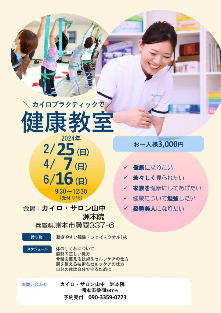 一日カイロ教室 開催のお知らせ【4月15日(日)、25日(水)、5月13日(日)】